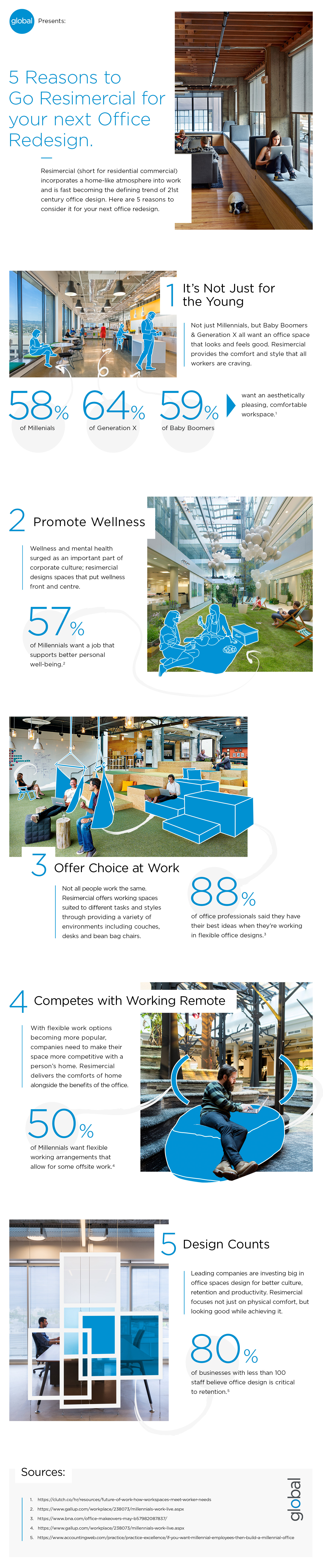 Resimercial (short for residential commercial) incorporates a home-like atmosphere into work and is becoming the defining trend of office design.