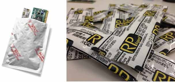 The RP System consists of a gas barrier bag and a customized RP agent composed of oxygen and moisture absorbing compounds to maintain product quality. The bag is then hermetically sealed to prevent oxygen and moisture penetration. An indicator can also be added to measure oxygen levels.