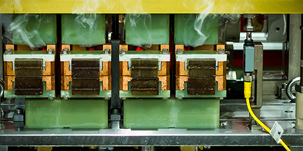 According to Dale Mellon, group director of special projects and new processes, induction heating is as simple as the process that works a doorbell. Alternating magnetic fields, generating positive and negative charges that cause a current to go back and forth, are the basis of this technology. “What we do is use frequencies that are higher than 60 cycles. As we’re using this high-frequency AC signal, we create a magnetic field which, in turn, causes a current to flow inside the steel itself. This heats the steel,” Mellon says.