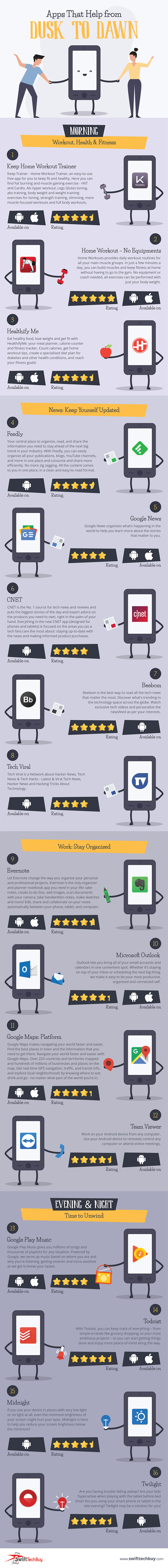 The below infographic from Swift Tech Buy highlights the most important apps those are required in daily life from morning to evening.
