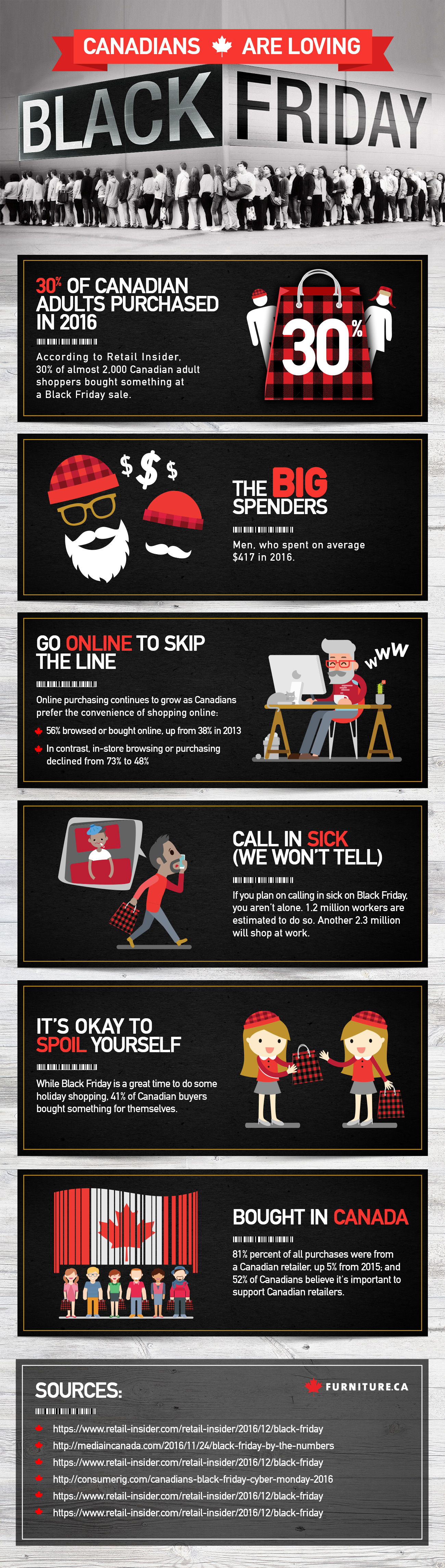 Canadians are falling in love with Black Friday. Furniture.ca created this infographic to provide some insights into Canadian buying behavior.
