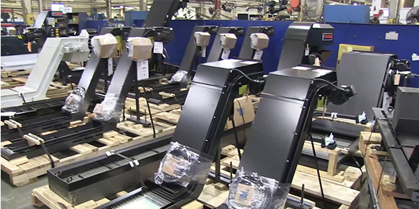 Scrap processors, which purchase Mayfran machinery for both their businesses and their suppliers, also represent a significant market. A case in point is a system to transport scrap directly from the stamping machine into the containers, using a unique conveyor that moves from side to side for even loading. The conveyor also is capable of judging if a container is full.
