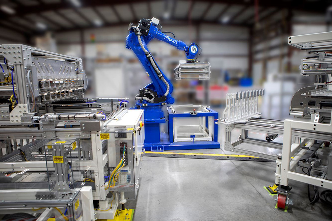 The Mantis Robotic Trim Press Handler is compatible with all trim presses, including BMG brands Brown and Lyle. The fully automated system can reduce labor requirements by up to 75% and the modular robotic design allows for tool changeovers in under an hour.
