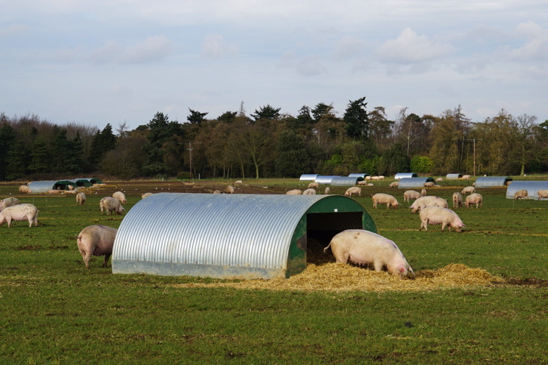The most sustainable model of pig farming is to downscale production to smaller farms to focus on raising fewer animals in larger spaces and provide farmers with the space to grow their own livestock feeds. This also allows for the possibility for forage feeding.