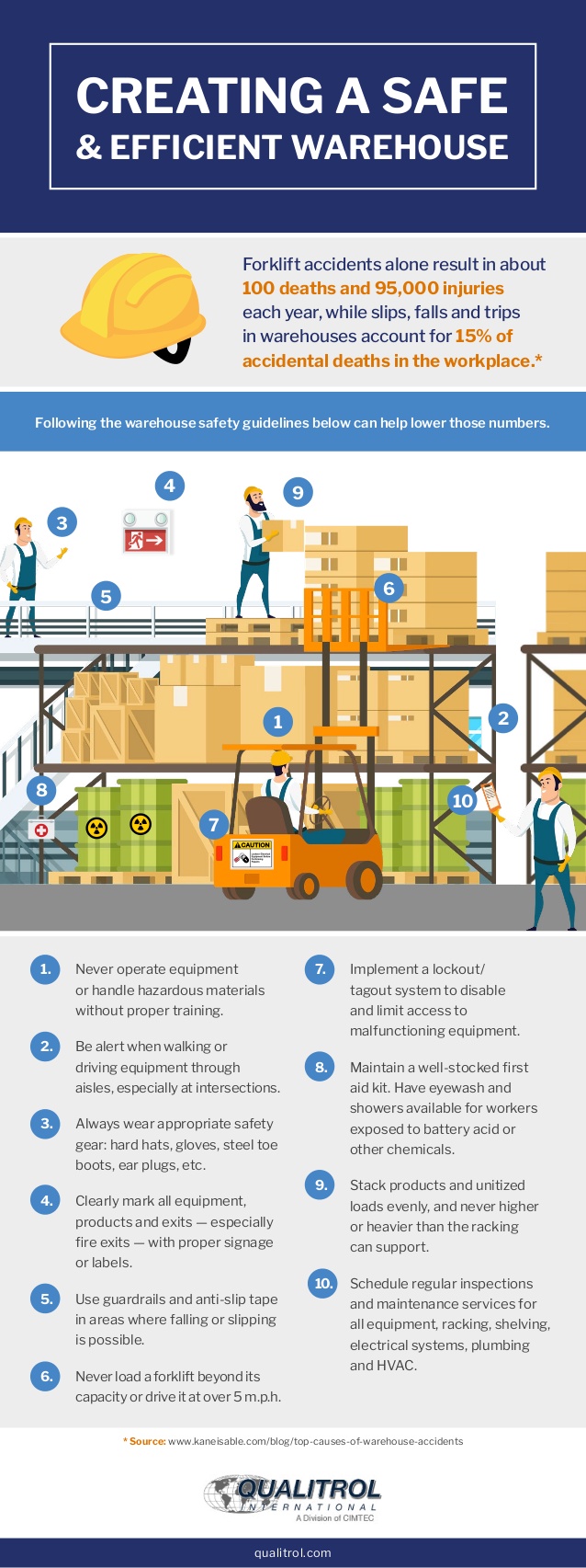 Use this infographic to help follow warehouse safety guidelines to help lower accidental injuries and deaths.