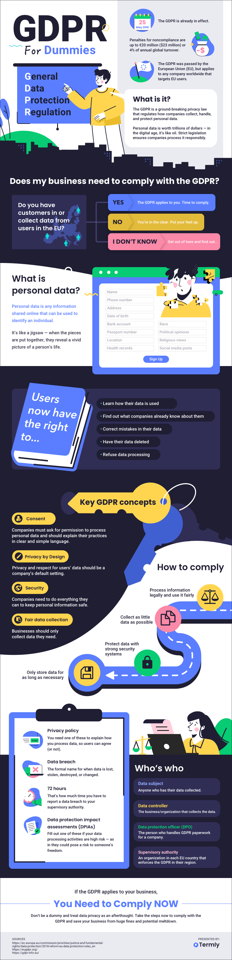 Learn all about the General Data Protection Regulation (GDPR) in 15 minutes or less with this simple language infographic!