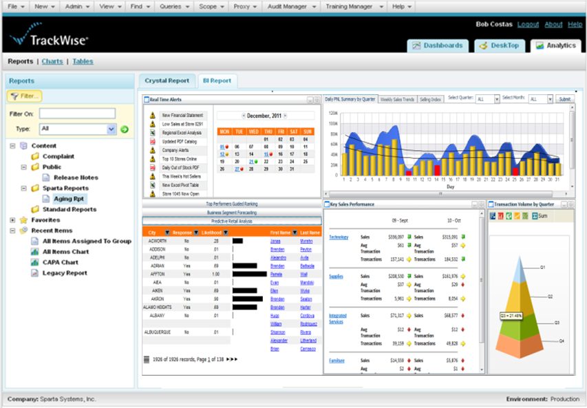 TrackWise is the market-leading quality management platform, but until recently it lacked an enhanced analytics module. Some customers used Excel for this purpose, but in many cases the volume of data became overwhelming for effective ad hoc analysis. Alternatively, in some cases they used their organization’s own business intelligence (BI) tools to create their reporting and analysis, but they typically relied on the IT department to develop complex SQL scripts to locate, extract, and reassemble data.