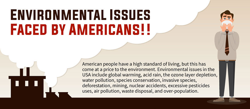 Apart from the CO2 emissions, the USA is facing soil pollution, air pollution, water pollution, garbage disposal, global warming, deforestation, acidification of ocean water, ozone layer depletion, radioactive contamination, mine pollution, overpopulation, and nano pollution. All these environmental issues are resulting in serious health issues. According to research, 46% of deaths in the United States are because of heart disease and cancer. The USA needs to work on these environmental issues to avoid severe future outcomes in terms of the worst weather and degrading the health level of the citizens. The country should move to some sustainable ways to tackle climate change and other relevant issues. For detailed information about the environmental problems faced by the Americans, view the infographic.