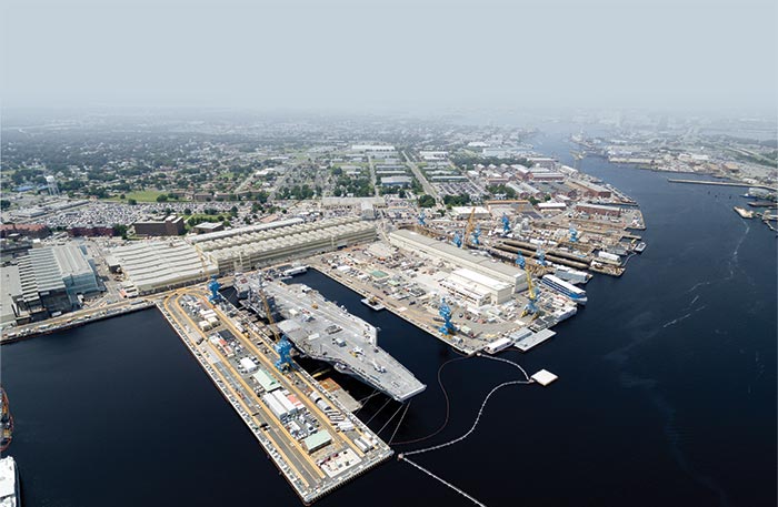Under the command of Captain Scott Brown, the 107th commander in the shipyard’s long history, NNSY’s physical footprint constitutes 585 acres on the main site and 1,355 acres including all annexes. It comprises four miles of waterfront, five supporting dry docks (one of which is capable of dry-docking an aircraft carrier) and three major piers and wharves. There are 685 facilities on the main site and six annexes. Plant replacement value exceeds $3.7 billion.
