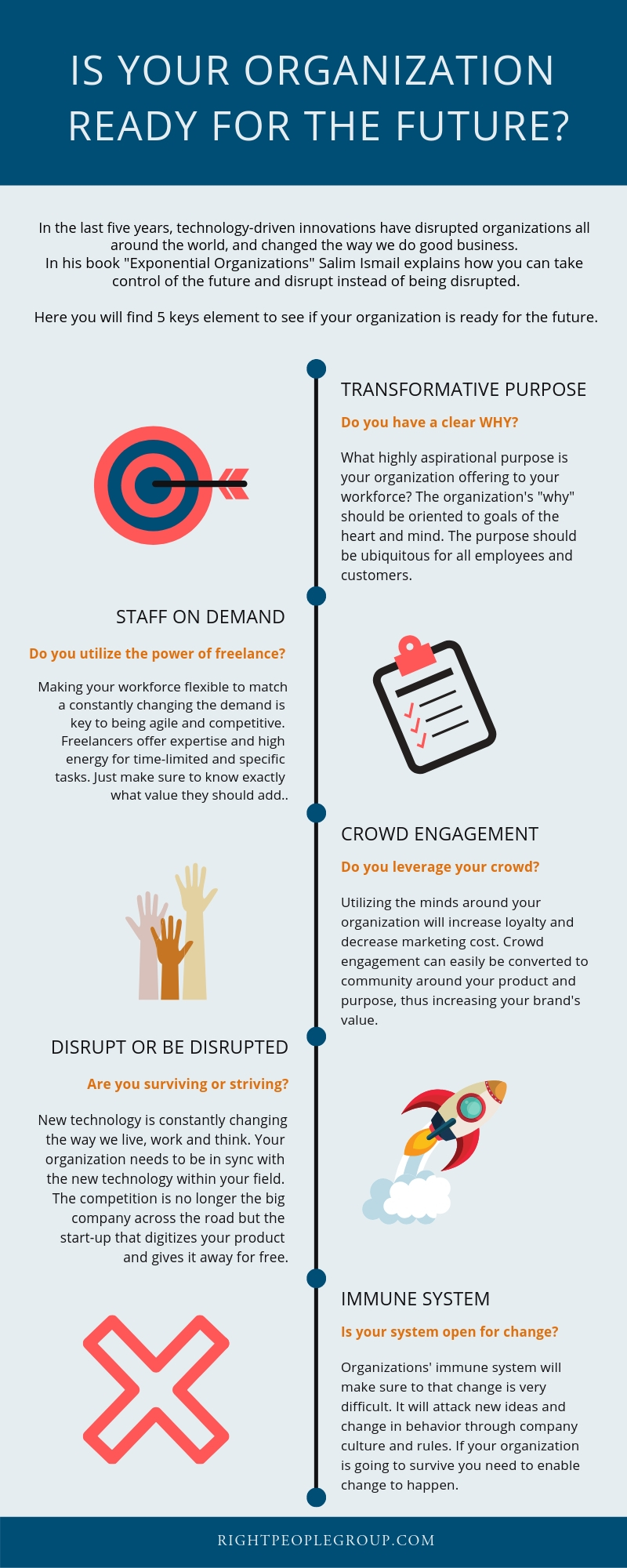 A summary by agency Right People Group of the main five points to be considered if an organization wants future success.
