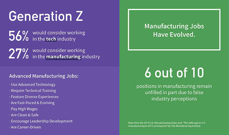 Clearly, Generation Z is better informed and more aware than their Millennial counterparts on the potential of a career in the industry. Leveraging even slight familiarity is the stepping stone for larger discussions around what modern manufacturing of today looks like.