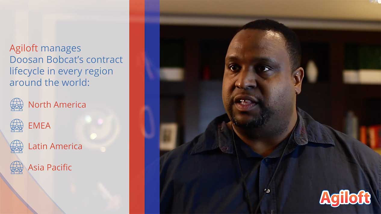 Doosan Bobcat’s next challenge is company-wide adoption of Agiloft. The company understands Agiloft is a very strong, flexible toolset, and the next step is to communicate that value across divisions to support other company initiatives. Contracts currently managed by Agiloft include leasing agreements, manufacturing agreements, logistics contracts, IT sourcing, HR recruitment, and indirect service contracts. The company has deployed Agiloft in its North America and EMEA regions and is now looking to extend deployment of Agiloft in the company’s Asia Pacific, Latin America, and Oceania business operations and leverage different ways of using Agiloft’s toolset.