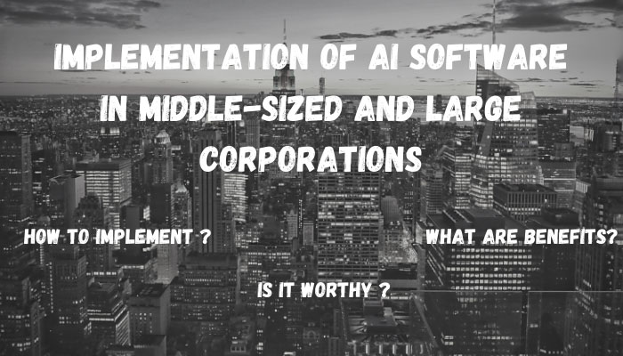 Implementing Artificial Intelligence (AI) software in middle-sized and large corporations is a serious business. Integrating AI into any organization takes in- depth knowledge, dedication to accuracy and wrap of time. However, to implement software’s successfully, don’t just follow the trends, but focus on that how AI can add value to your business and find out where it is needed most.