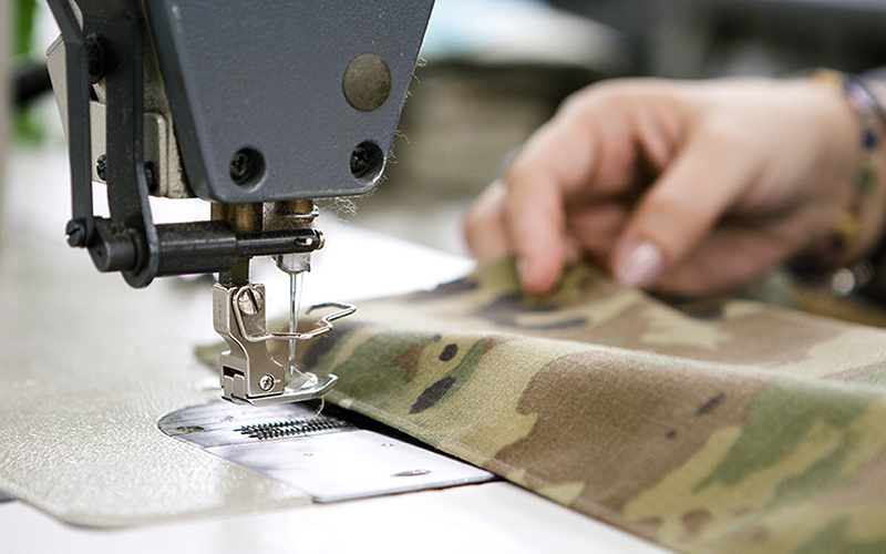 Today, the company is the largest producer of Army Combat Uniform (ACU) trousers in the US. Bluewater Defense manufactures trousers for four different uniforms under one contract, reaching 1.5 million a year in 2016 (a figure that has quadrupled over the last four years). Despite the trousers being the largest contract, or “bread and butter,” as Hanson describes, the company supports other products. Over the life of the three ACU contracts, Bluewater Defense has manufactured eight million units including coats and trousers. It also produces a variety of other items such as a 4-way stretch Underway Battle Dress Uniform, cold weather socks, vapor barrier socks and sealed linebacker jackets.