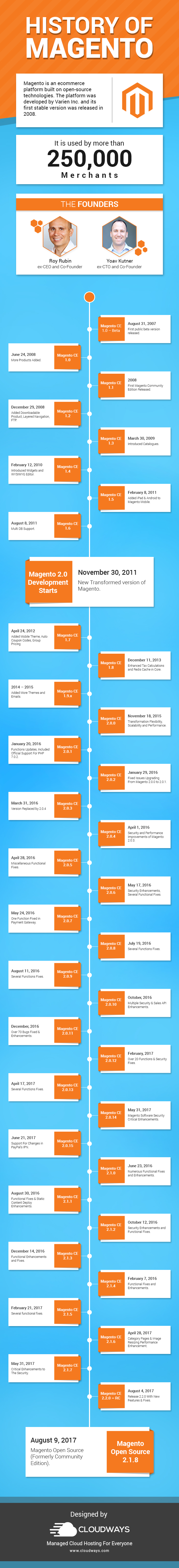 We have updated complete versions of Magento 1 and Magento 2, with dates and also features, functions are listed with version. Complete 10 years of history