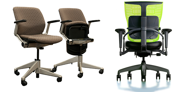 TRAIN, a table with embedded wiring and cable management, adds a level of flexibility to meeting rooms that was previously unavailable. It’s designed to be modular so clients can “knock” down and rearrange rooms simply by flipping and folding up the TRAIN table. LUCY, Vecta’s newest chair, uses pellethane, a pliable, rubber-like material developed by Dow Chemical Company, to provide added comfort and flexibility even as it’s tilted back and rotated.