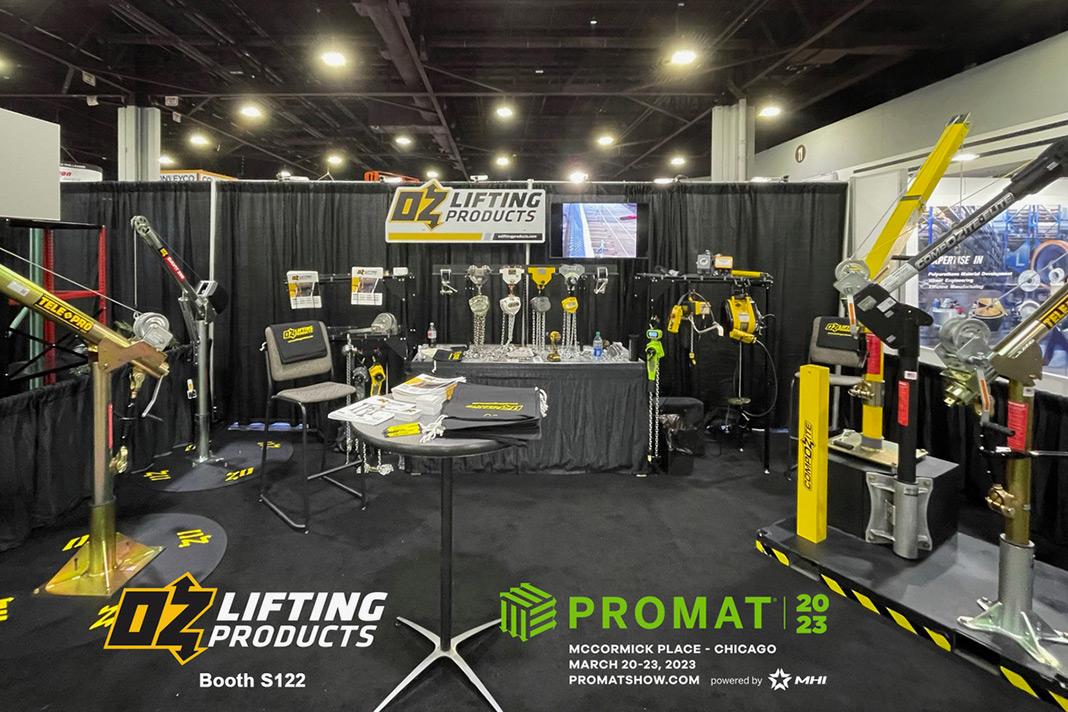 OZ Lifting will show a variety of davit cranes, hoists, and lifting components at ProMat, which takes place March 20-23, 2023 in Chicago.