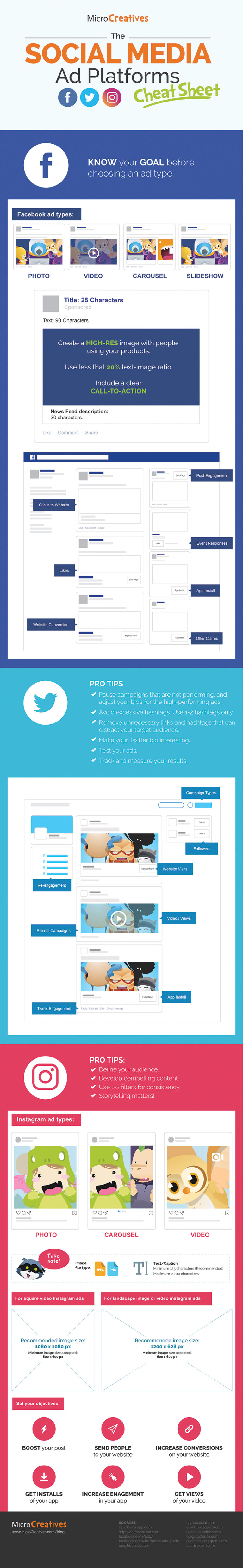 Familiarize yourself with how each ad platform works. See what’s best for your organization with this social media cheat sheet from MicroCreatives.