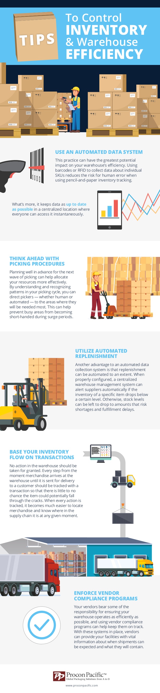 Use this infographic to help create an efficient and more productive warehouse for your company. These tips will increase your warehouse usage.