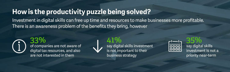 A large reason for this productivity loss relates back to digital skills and many manufacturers’ hesitance to incorporate them into their business models – it’s costly, time-consuming and disruptive to day-to-day operations but, of course, has a very high payout in the long-term. Of all businesses surveyed, only 61% of U.S. businesses plan to invest in digital skills to increase their profitability. In comparison to the 12 countries surveyed, the US, UK and France were the least likely to invest in digital skills in 2019 – the main reason cited was “a lack of applicability to business strategies.”