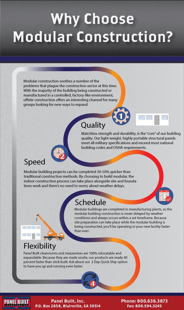 Modular construction consists of manufacturing a structure offsite then installing it at the job site after the structure is nearly completed.