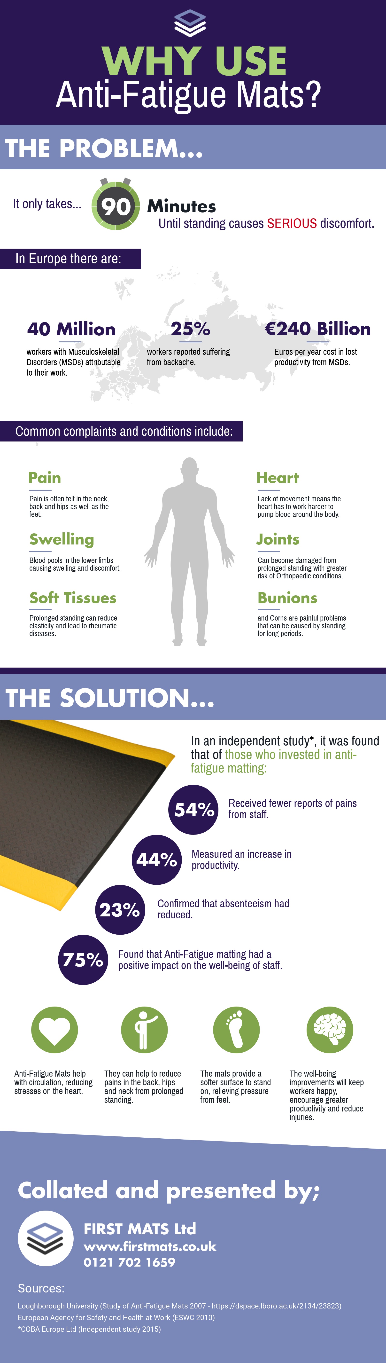 Home Articles Human Resources & the Workforce ArticlesHuman Resources & the WorkforceMediaInfographics Why Use Anti-Fatigue Mats January 19, 2018 Highlighting the negative effects of prolonged standing and how using Anti-Fatigue Mats can help. https://www.firstmats.co.uk RELATED ARTICLESMORE FROM AUTHOR CW Partner Program Members Average Higher Revenue PLANCISE Awarded Smart Warehouse Solution of the Year AI Chat Interface from 22Miles Wins Big at InfoComm 202
